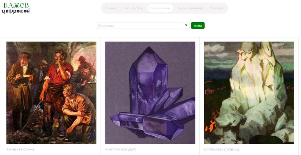 Рис. 1. Раздел «Поиск по сказу» онлайн-версии «Бажовского словаря»
