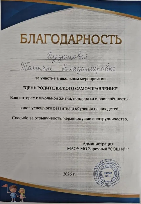 15 апреля 2026 года для ребят 2б класса МАОУ МО Заречный «СОШ № 1» в рамках школьного мероприятия «День родительского самоуправления» прошло мероприятие «Меж звёзд и галактик».