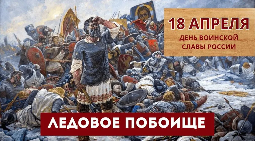 18 апреля отмечается День воинской славы России в честь победы русских воинов князя Александра Невского над немецкими рыцарями на Чудском озере в 1242 году. Эта славная победа, сыгравшая решающую роль в истории нашей страны, более известна как Ледовое побоище.