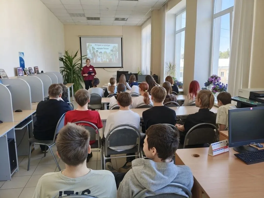 В Городской библиотеке 14 и 15 апреля прошло познавательное мероприятие для учеников 4-й и 7-й школ под названием «История и культура народов России», которое стало частью ежегодной всероссийской акции «Библиосумерки-2026».